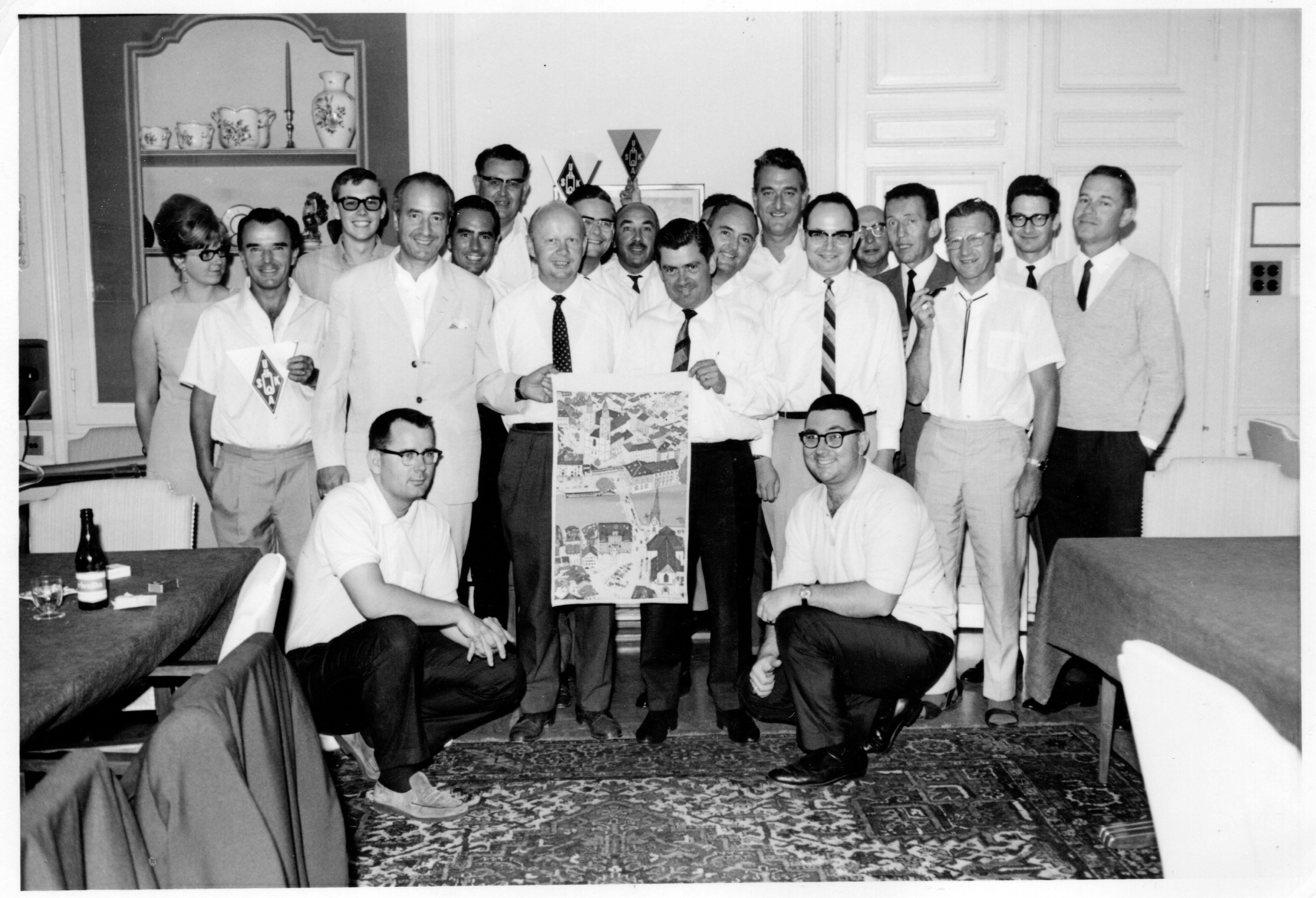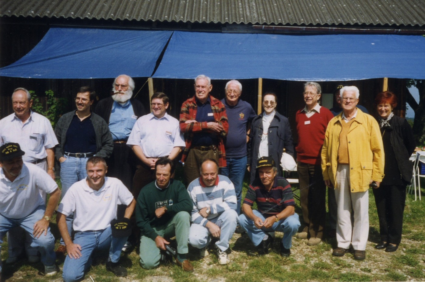 XYL von Etienne, HB9DX; Fritz, HB9GJ; Rolf, Sohn von Oscar HB9ID; Jean, HB9J; Oscar, HB9AFM; Ernest, HB9KB; Guido HB9JG; Etienne, HB9DX; Oscar, HB9ID; Sepp, HB9MD; René, HB9AHA; Felix, HB9MQ; Peter, HB9PL; Erich, HB9AT; Luigi, HB9KU; Sepp, HB9PQ; Bruno, HB9QO; Rudi, HB9EU (Foto von Ruth, XYL von HB9PL; Aus der Sammlung von Peter, HB9PL)